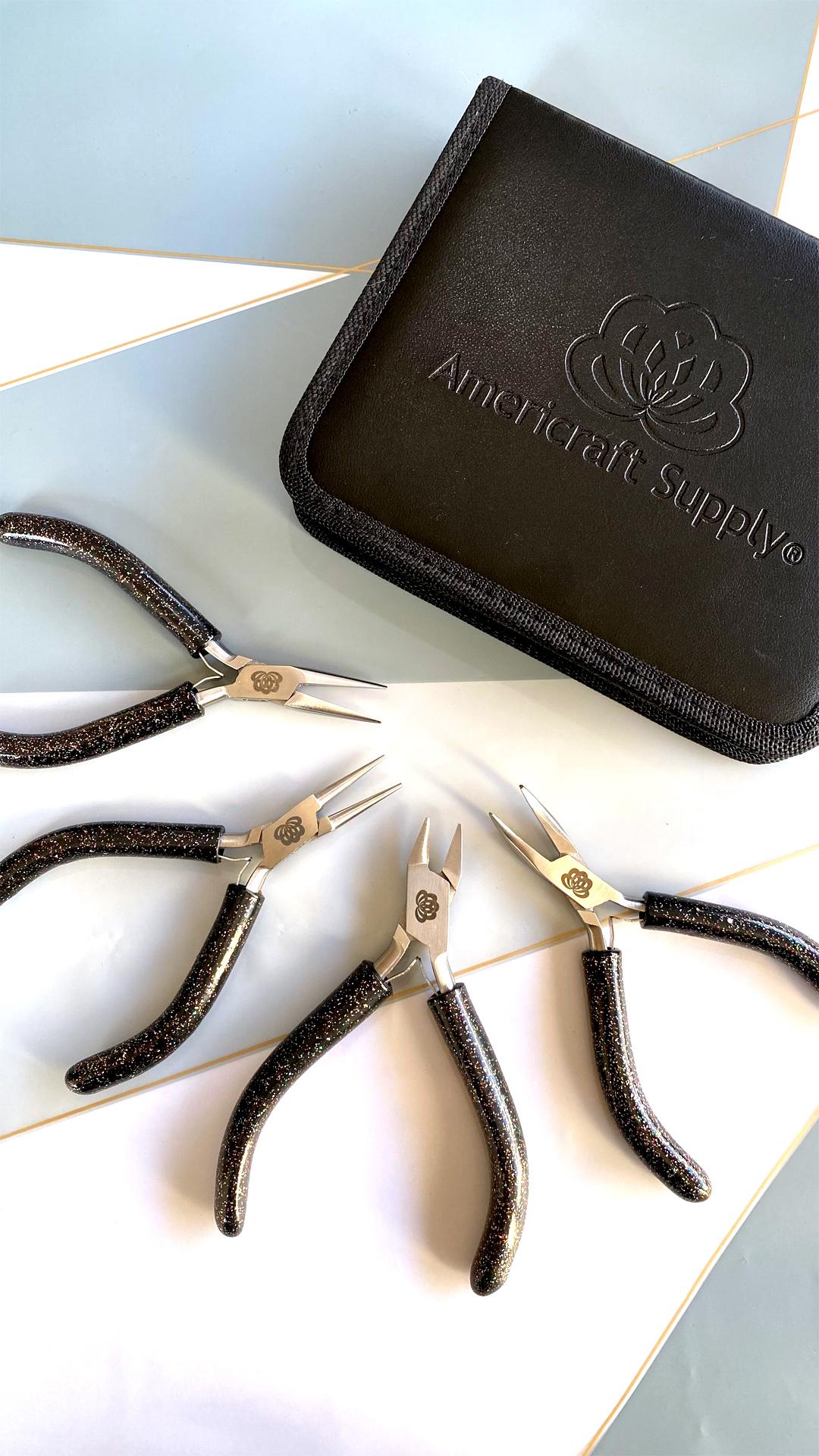Set of Basic Jewelry Pliers. 9 pcs - Shiny Black Clutch, Black Glitter Handle tools 4.5